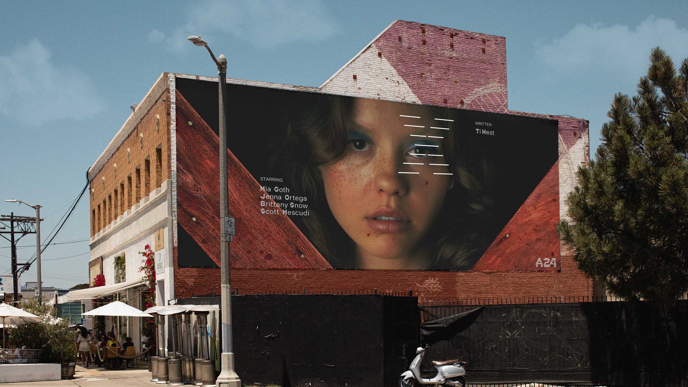The billboard initially appears static with custom typography and a color scheme inspired by the A24 film. As a person passes by, the screen widens to reveal a sneak peek of the movie's trailer, representing the gradual unveiling of the story.